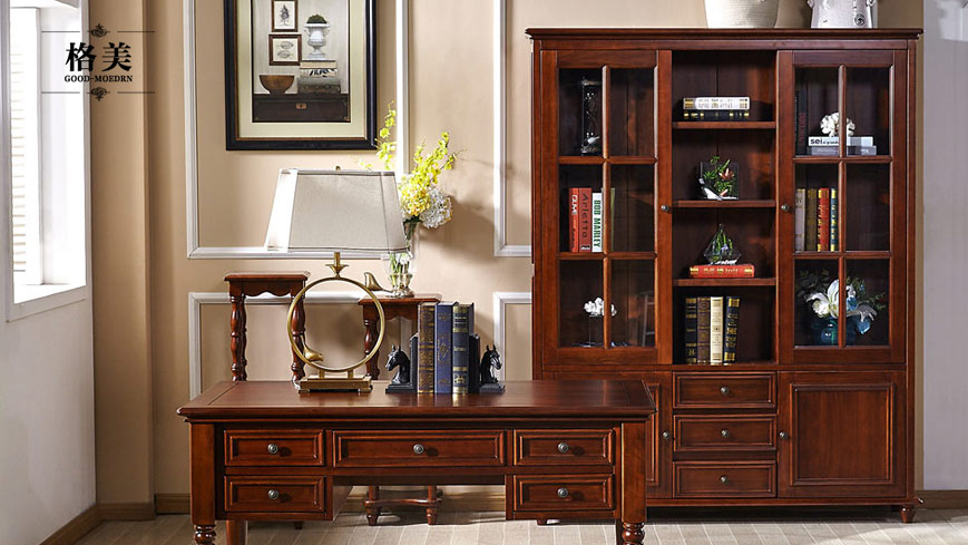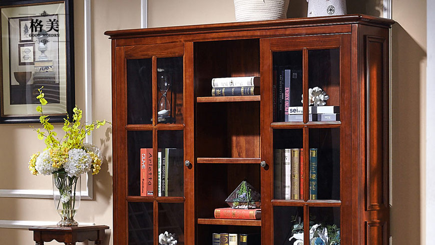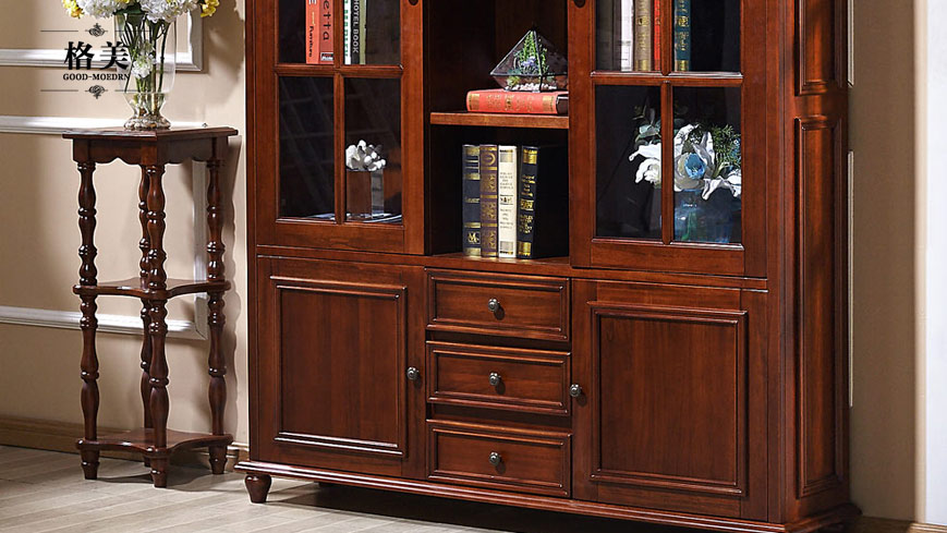 美式全实木三门书柜
