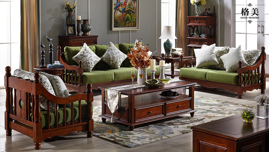 B-F01美式全实木布艺沙发1+2+3